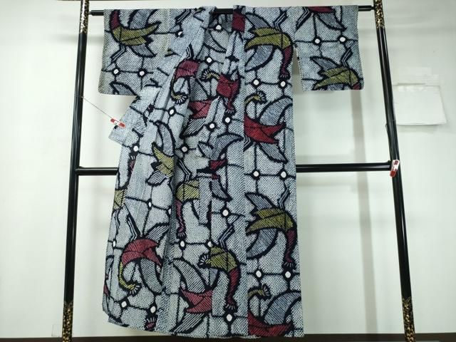 平和屋着物∴夏物 浴衣 有松鳴海絞り 孔雀文 綿 ng
