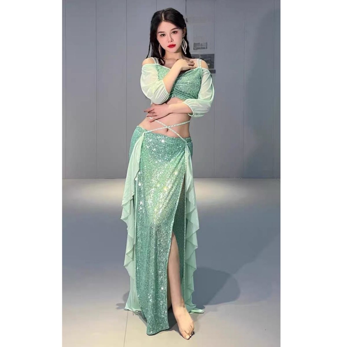 ベリーダンス オリエンタル衣装 ビーズ 社交ダンスドレス マーメイド スパンコール 演出用 ダンス衣装 セット レッスン着 3 選択