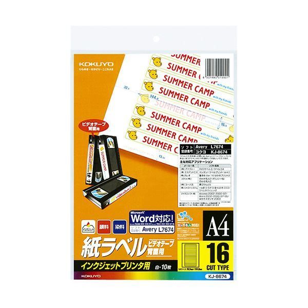 コクヨインクジェットプリンタ用 紙ラベル ラベル A 4 ビデオテープ 背面用16面 KJ 5冊