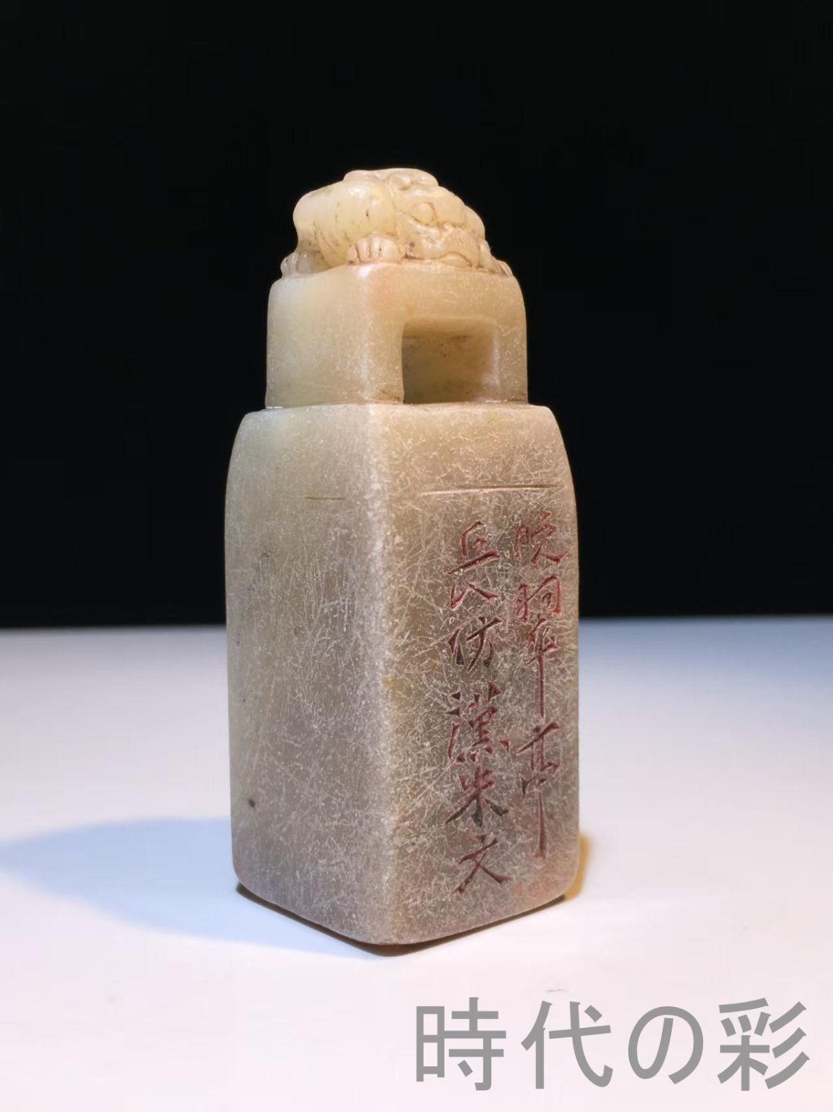 旧蔵芙蓉石による名家・?翠亭長作款の閑章。彫刻流麗、包漿厚く自然。印面と石形の調和が美しく、観賞価値高い。