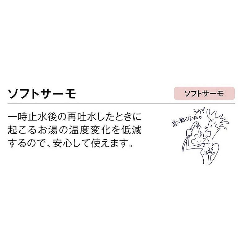 【ソフトサーモ】一時止水後の再吐水したときに起こるお湯の温度変化を低減するので、安心して使えます。