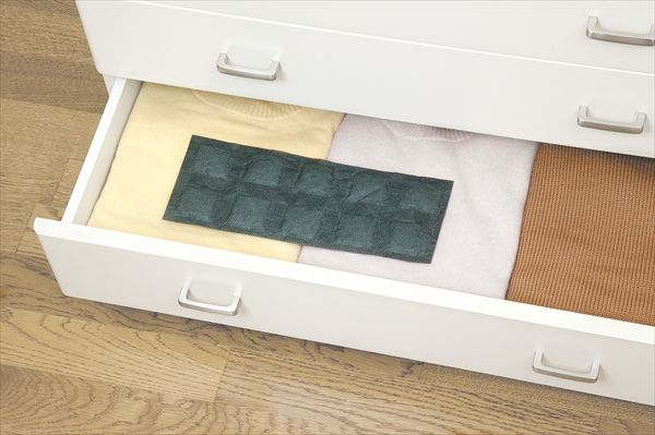 本品の主成分(除湿剤)は、安全な「B型シリカゲル」です。湿気を吸収しても水分が出たりゼリー状になったりしないため安心してお使いいただけます。天日で再生、繰り返し使えます。