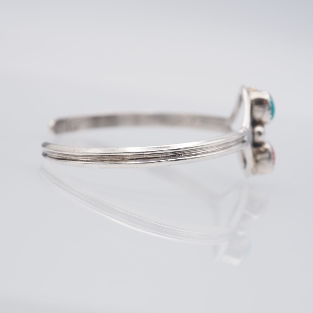 H 583 ターコイズ トルコ石 赤珊瑚 サンゴ K刻印 バングル デザイン シルバー 腕輪 ヴィンテージ 誕生石