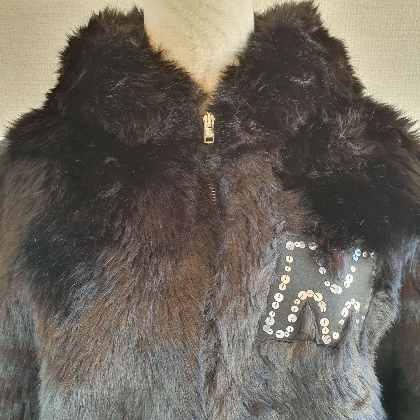 【仕様】 胸元にロゴパッチ、スパンコール装飾、エコファーディテール、ロングスリーブ、ゴムカフス