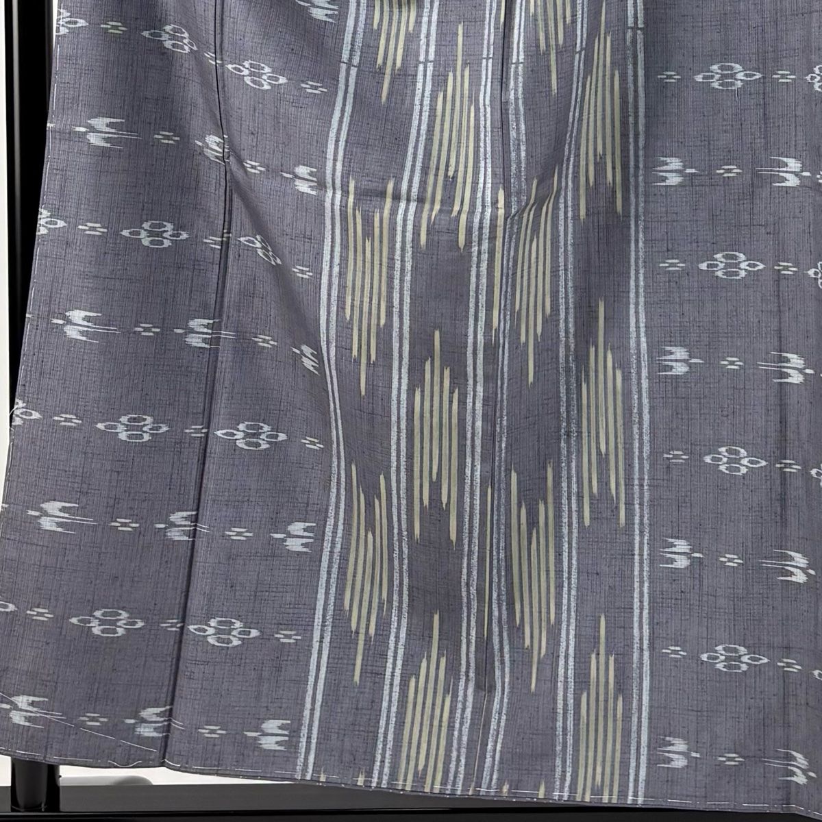 紬 身丈156.5 cm 裄丈63.5 S 袷 川村久太郎 落款 証紙 燕 縞 灰色 正絹 秀品