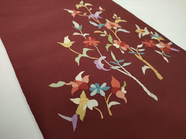 平和屋着物 爪掻き本綴れ 八寸名古屋帯 枝花文 金銀糸 正絹 ps