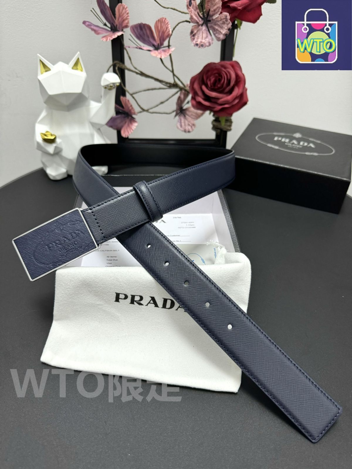 今日 PRADA プラダ クロスグレインレザーベルト-1