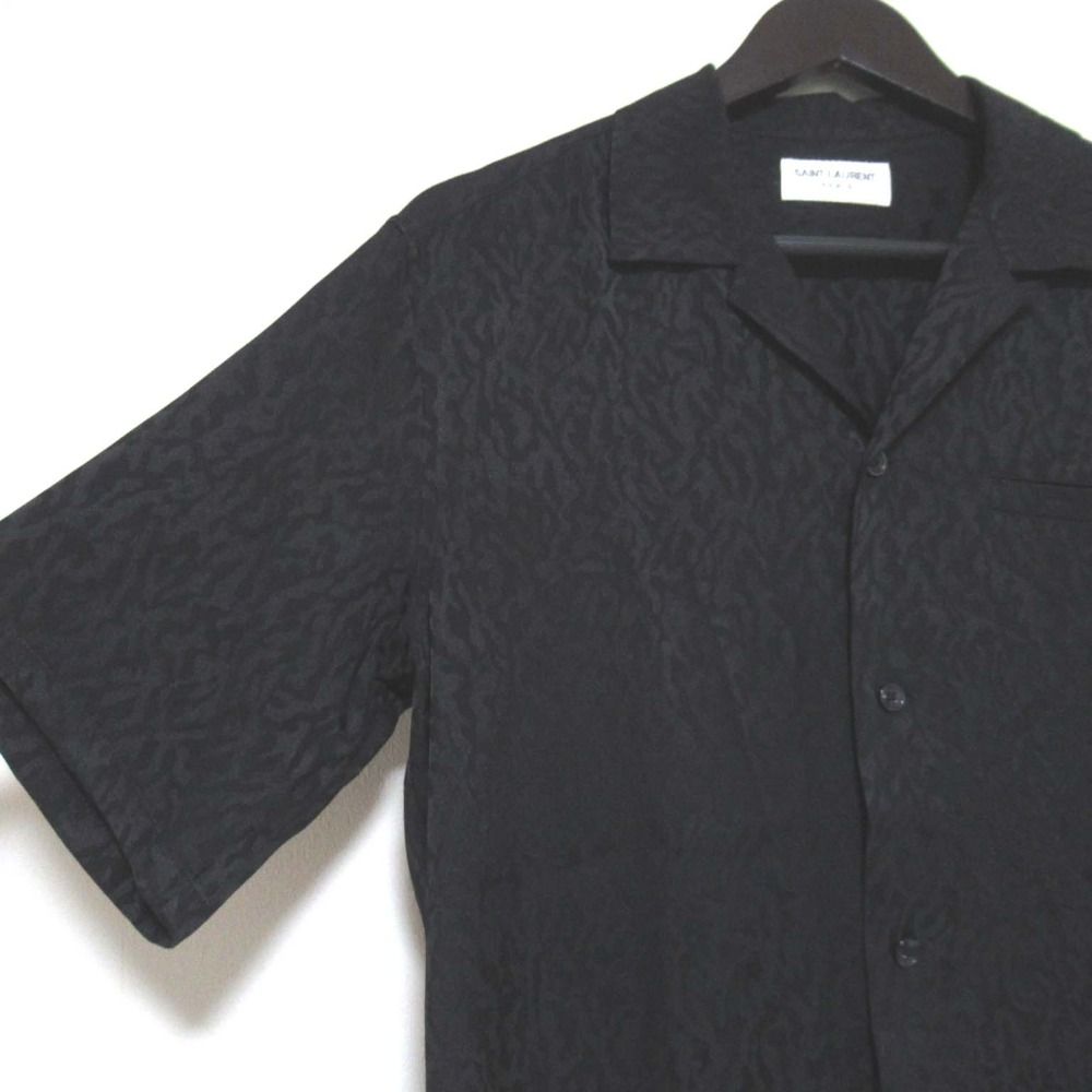 【商品名】SAINT LAURENT PARIS サンローランパリ ベイビーキャット シルク 半袖 オープンカラーシャツ サイズ37 175/92A ブラック