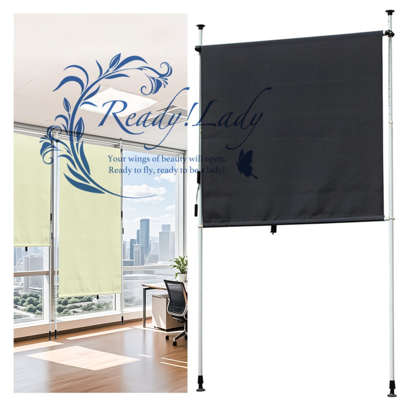 【突っ張り式で簡単設置】穴あけ不要の突っ張り式サンシェード 縦型 オーニングシェード 日除け 屋外。ベランダやバルコニーに最適で、ロールスクリーンのように手軽に設置できます。