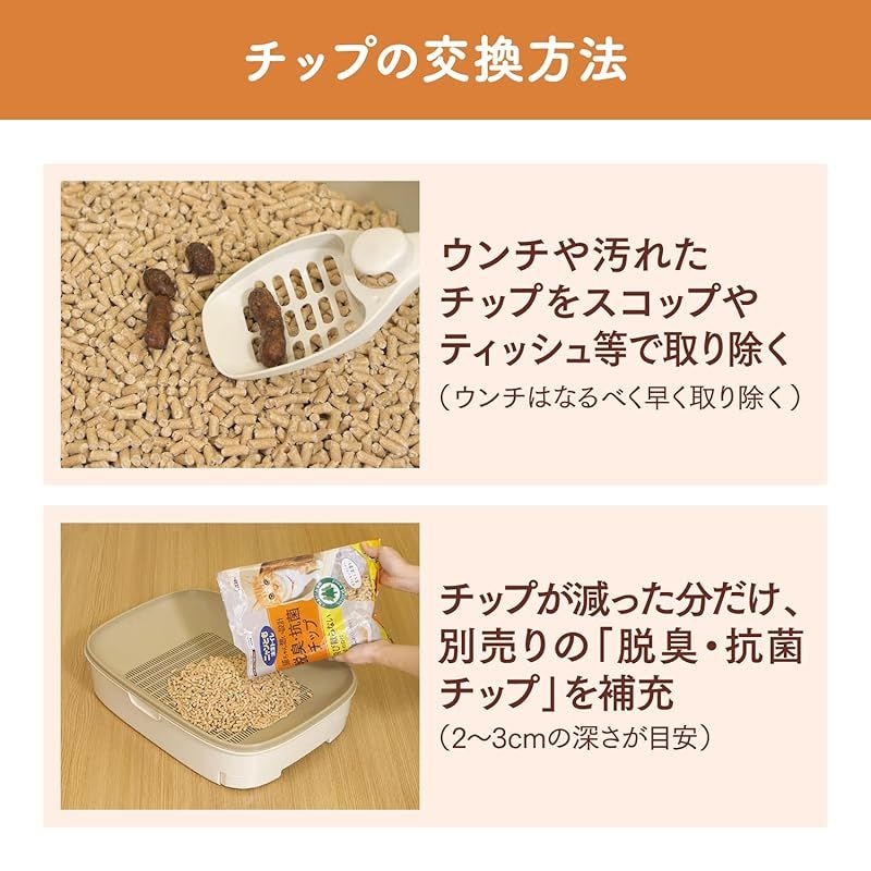 【足元サラサラでいつも清潔】オシッコで固まらず表面サラサラのチップ(猫砂)。