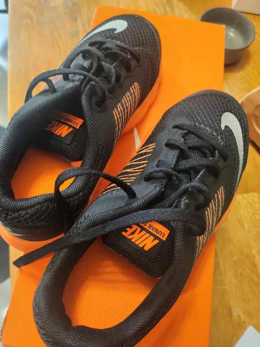 これらは新しい靴箱に入ったナイキの子供用スニーカーです。黒い背景にオレンジのアクセントが効いており、洗練された雰囲気を醸し出しています。子供が簡単に着用できるようにひもが付いています。ご不明な点がなければ、すぐに安心してお支払いいただけます!