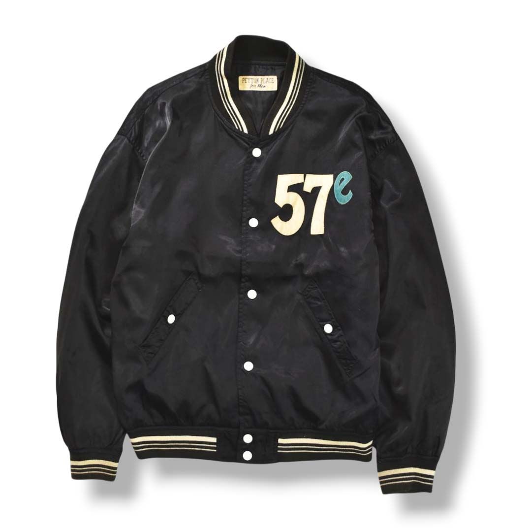90 s ヴィンテージ ペイトンプレイス フォー メン PEYTON PLACE FOR MEN スタジャン スタジアム ジャケット サテン 総裏地 ジャンパー ブルゾン M ブラック メンズ