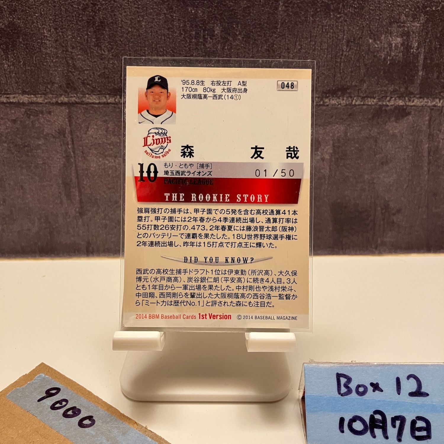 2014 BBM 1st Version 森友哉 01/50 ホロ箔サイン 埼玉西武ライオンズ RC ルーキー Rookie ファーストナンバ