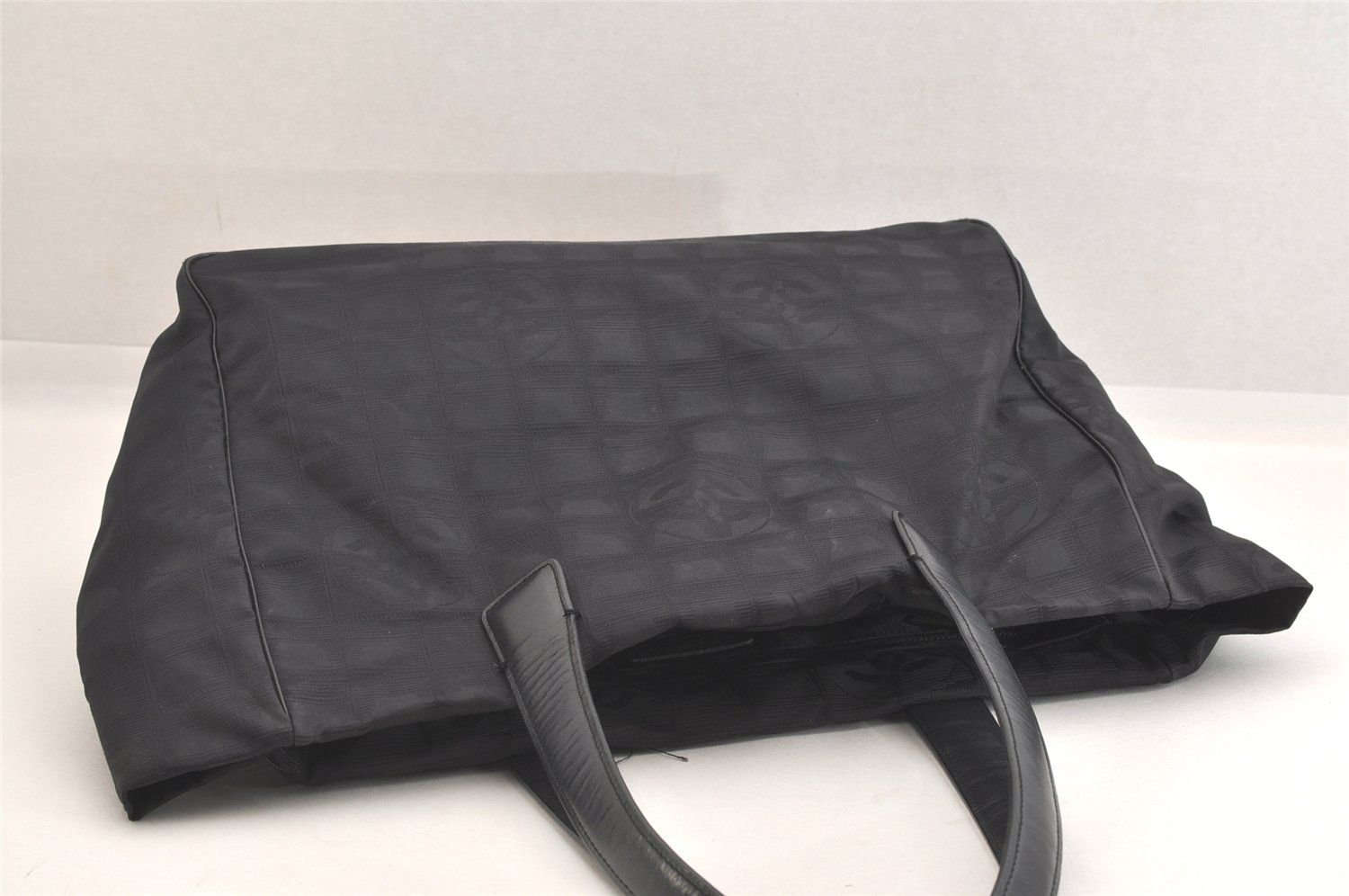 CHANEL シャネル ニュウ トラベル ライン ショルダートートバッグ ナイロン レザー ブラック 2453 N