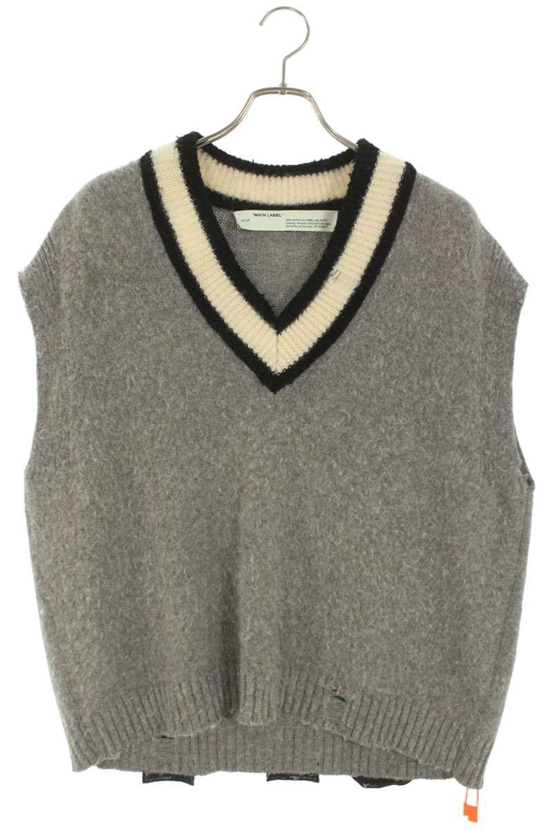 オフホワイト ダメージ加工ニットベスト メンズ M
