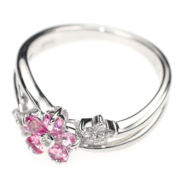 K 18 WG ピンク サファイア ダイヤモンド リング 0.56 ct D.15 桜