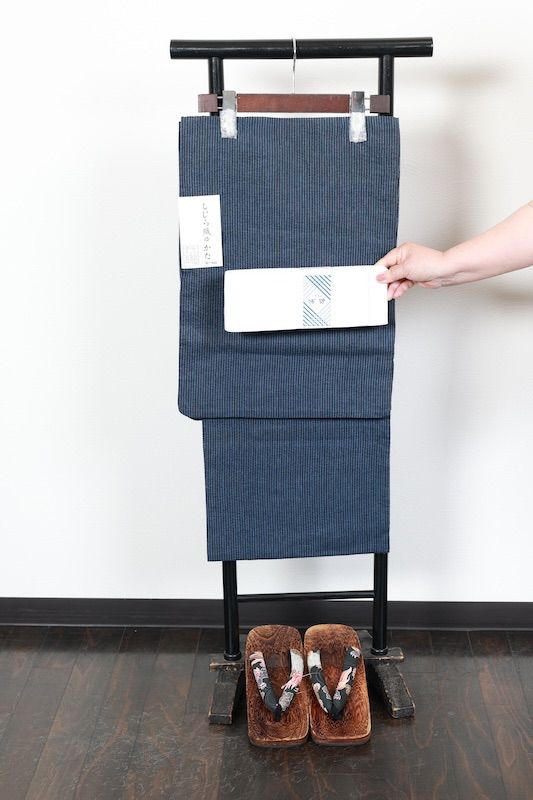 男浴衣3点セット 藍濃淡 縞 しじら織 SS 56