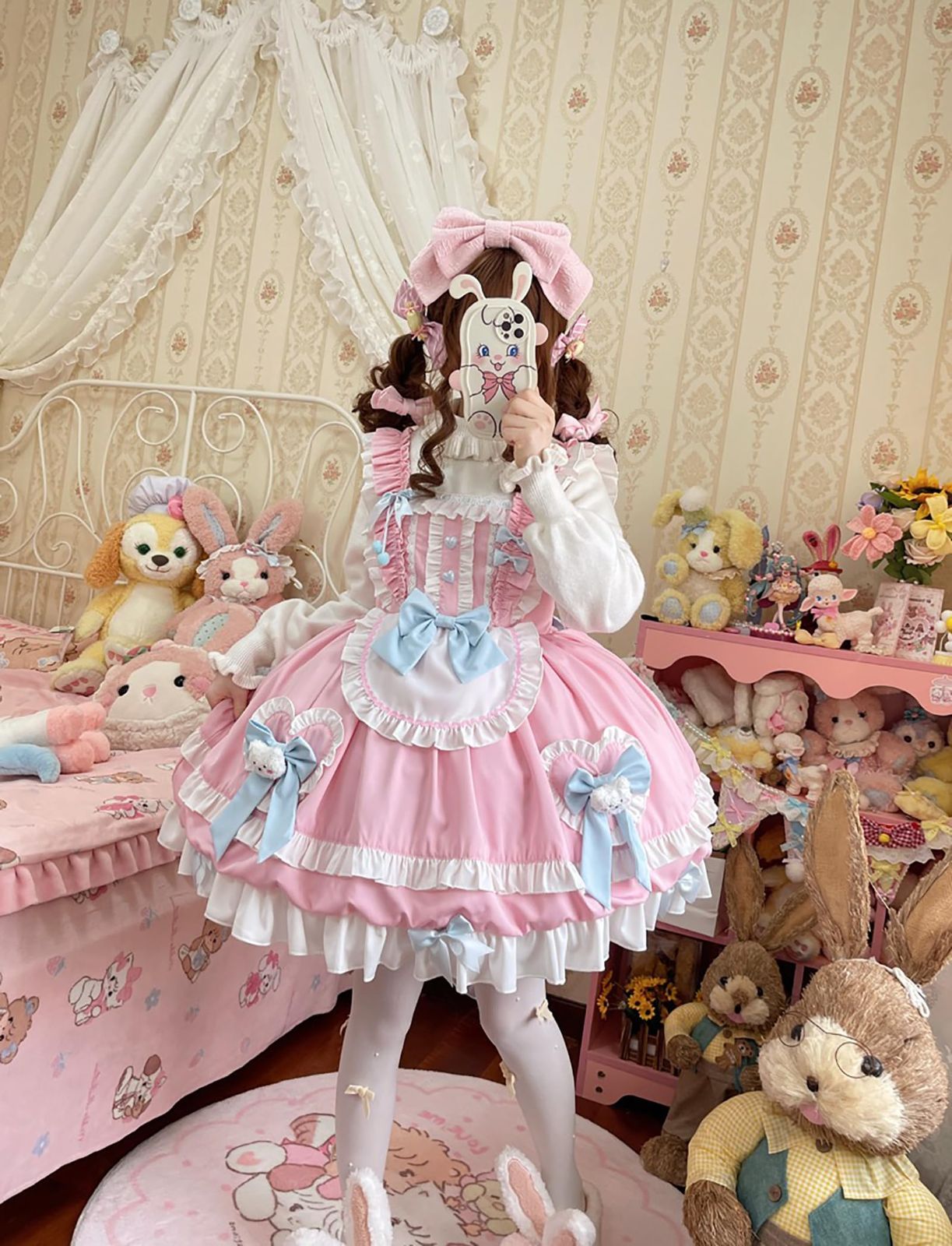 ロリータ JSK ジャンパースカート キャミソール リボン レディース ワンピース ゆめかわいい 兎 ゴスロリ ドレス 洋服