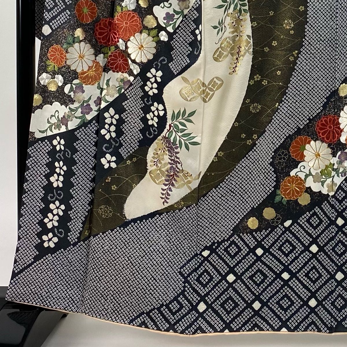 振袖 身丈163 cm 裄丈67 M 袷 菊 梅 金銀彩 絞り クリーム 正絹