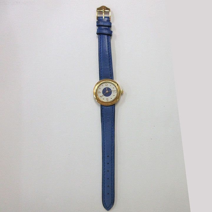 ケース素材 ステンレス製 ケースカラー:ゴールド バンド:青レザーストラップ 文字盤:アイボリー+青