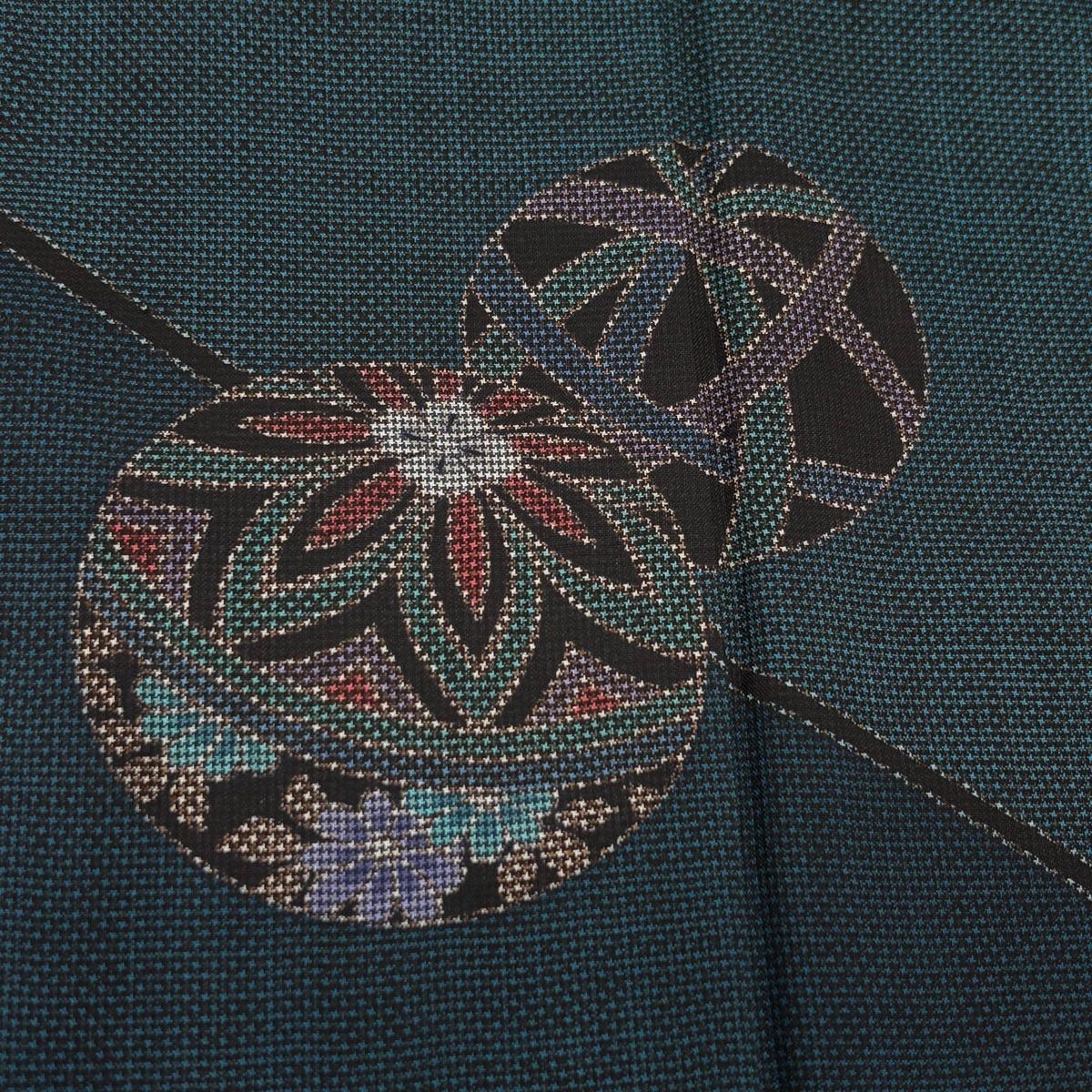 付下げ 身丈165 cm 裄丈65 M 袷 大島紬地 純泥染 落款 証紙 鞠 流水 緑 正絹