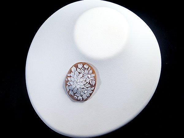 咲き誇る花々の彫刻が魅力的なシェルカメオルースを激安価格で特別大放出致します!