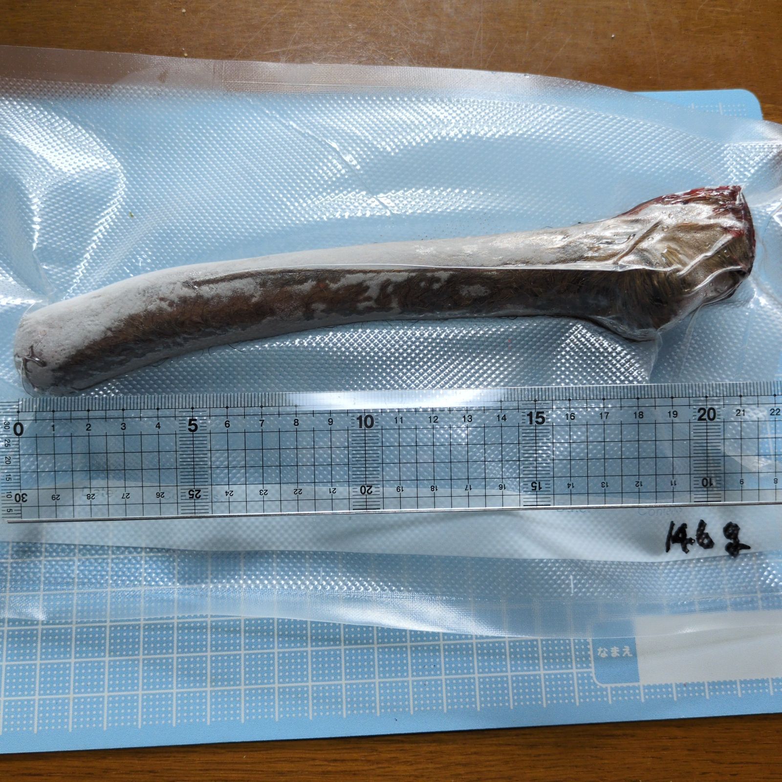 捕獲後すぐに切断し、真空パックにして冷凍しました。
