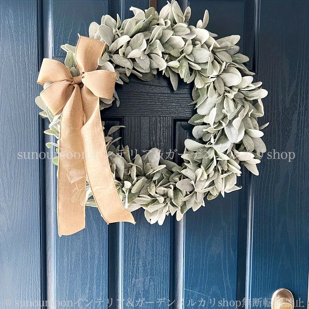 こちらは、優雅で美しいデザインの「ユーカリのリース 」です。このアイテムは、あなたの玄関やガーデンを華やかに演出することができるリースです。心地よい風合いと温もりを感じさせる仕上がりが特徴です。