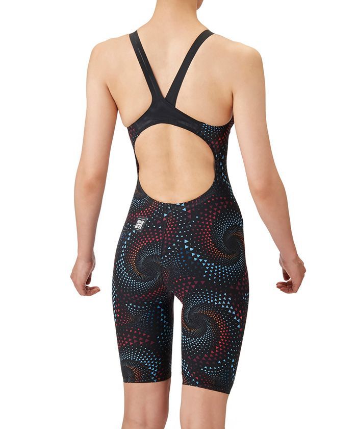 レディース水着にはアリーナダブルストラップ理論を応用した、部分的に切り込みの入った肩紐を採用。