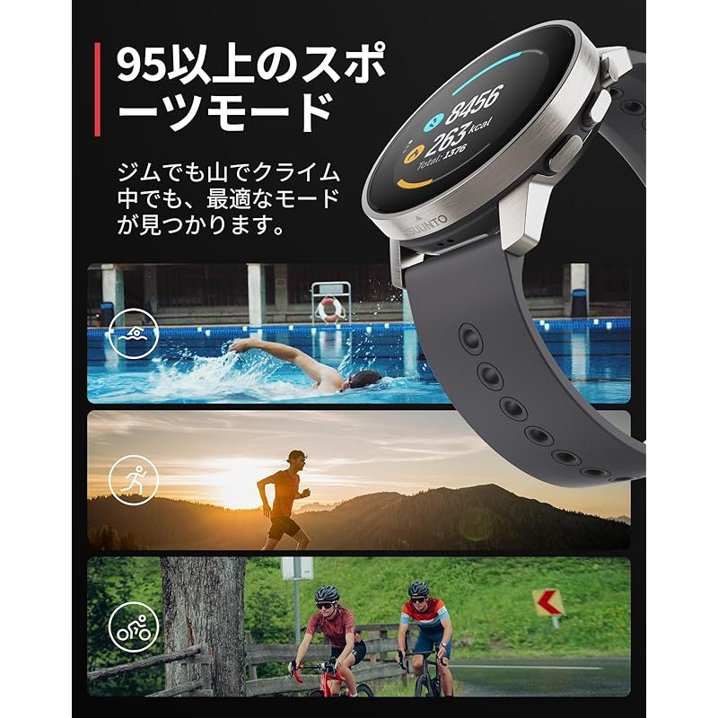 主な機能:血中酸素レベル計測、睡眠計測、消費カロリー計測・歩数計(アプリと連動)、心拍・速度・距離・方角・高度計測、時計上にアウトドアマップとヒートマップを表示、スマートフォン着信通知、調整式バックライト、1時間でフル充電完了、防水: 100m 、水深最大 10m まで測定、 軍規格適合試験済み(MIL-STD-810H)、バッテリー駆動時間:GPSモード(40時間/70時間/300時間)、日常的な使用で21日間、衛星システム(GPS, GLONASS, GALILEO, QZSS, BEIDOU)
