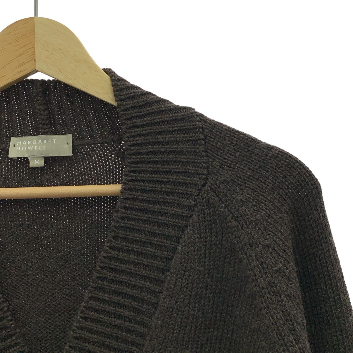 MARGARET HOWELL マーガレットハウエル ウール Vネック ニットカーディガン M ブラウン メンズ