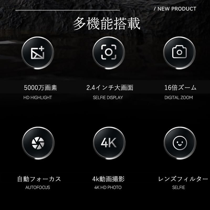 トイカメラ デジタルカメラ キッズカメラ 5000万高画素 子供用カメラ 4 K動画撮影 AF 2.4インチ 16倍ズーム タイマー機能 学生 初心者