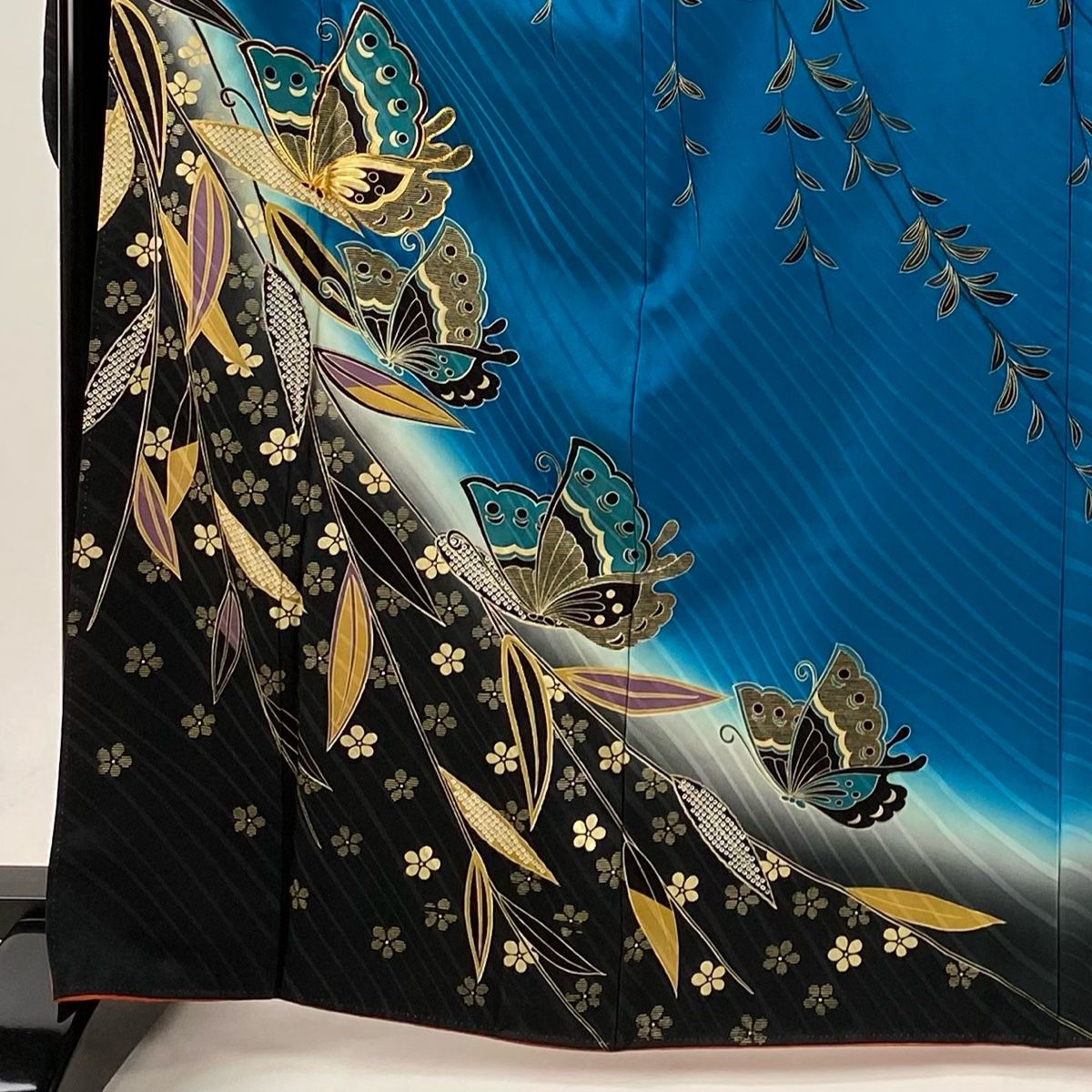 振袖 身丈165 cm 裄丈67.5 L 袷 蝶 梅 金糸 金彩 青緑 正絹 秀品