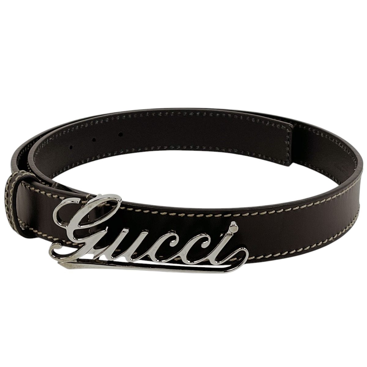 グッチ GUCCI ロゴ ベルト ステッチ レザー ブラック メンズ