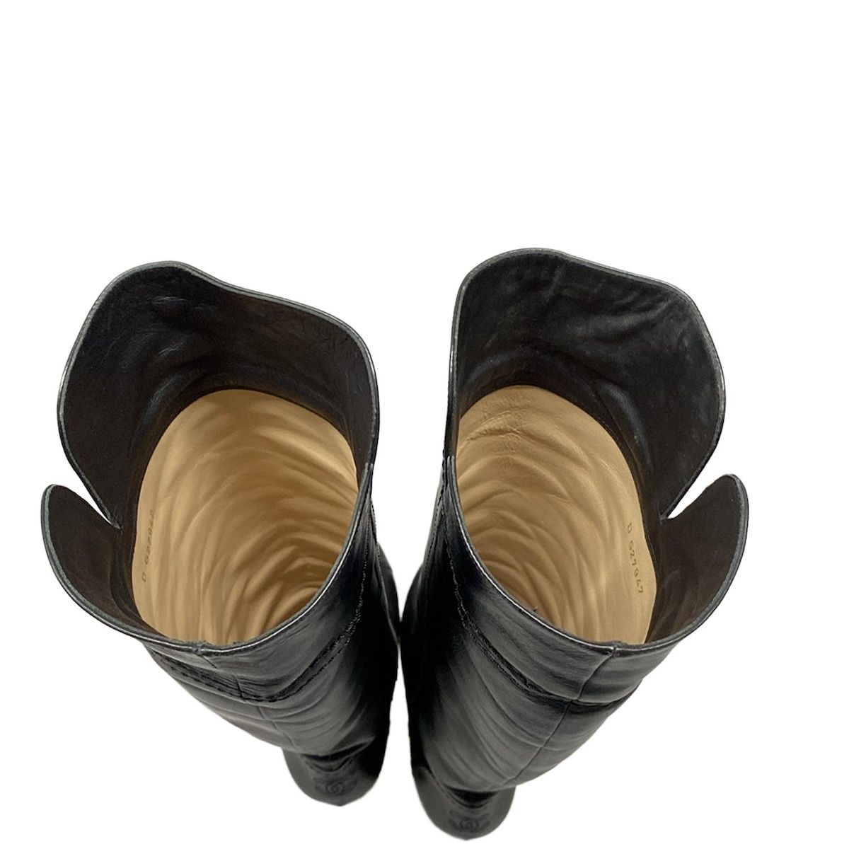 CHANEL シャネル ロングブーツ 36 C レディース G 27947 黒 チェーン ウェッジソール アウトソール張替済 レザー