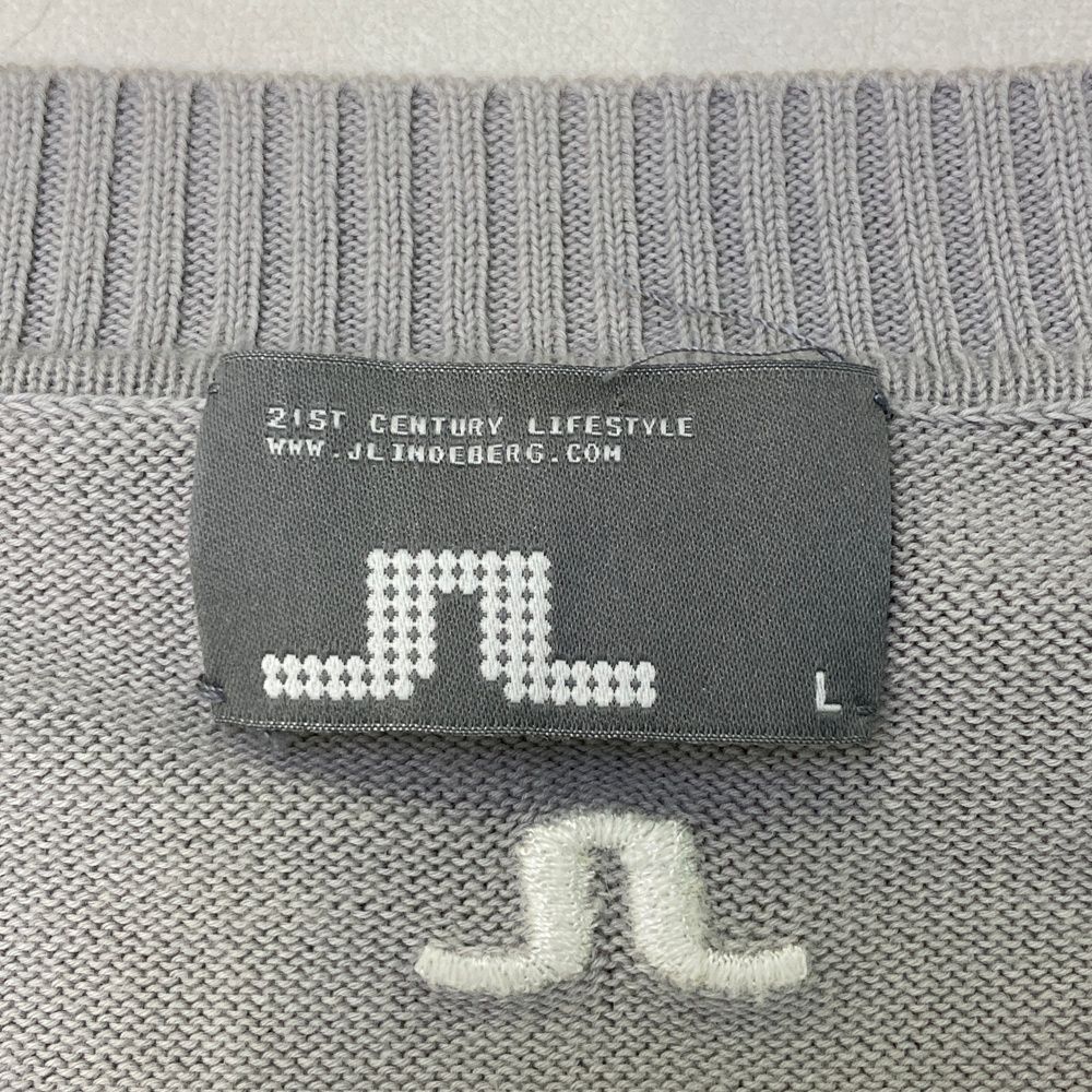 サイズ L J. ジェイリンドバーグ 071-19225 Vネック ニット セーター ダイヤ 総柄 グレー系 ゴルフウェア メンズ ストスト