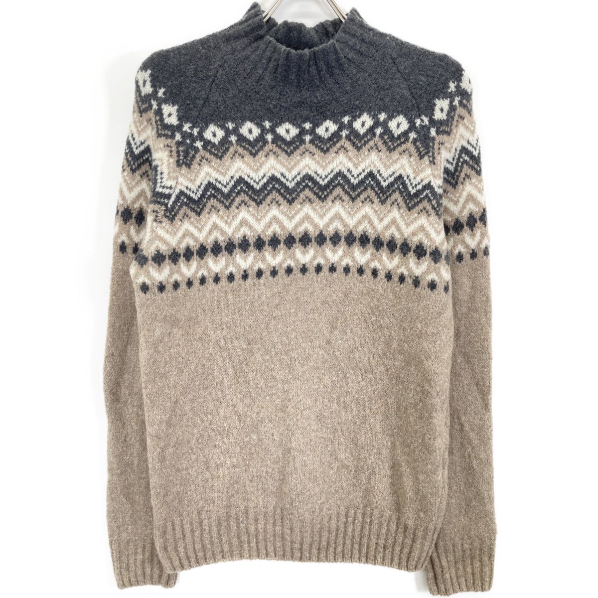 タイプ)23AW ベージュ×グレー ノルディック柄 ハイネック ニット