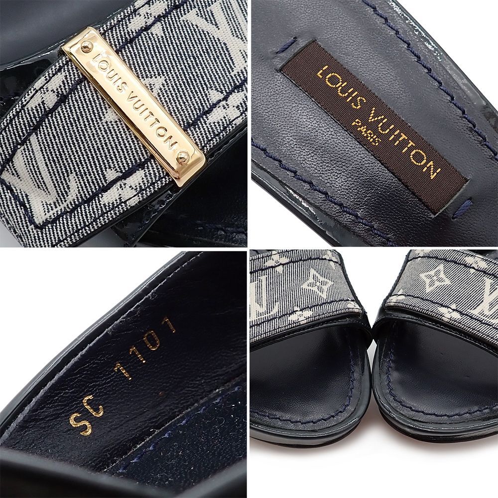 ルイ ヴィトン ミュール ハイヒールー レディース 靴 モノグラム イディール ネイビー系 #37 1 2 24.5 cm 訳アリ