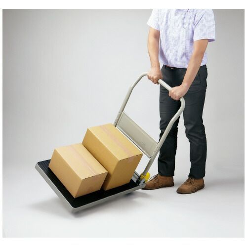 ●サイズ/本体:W455×D710×H905mm●キャスター直径/100mm●材質/本体:ポリプロピレン、ハンドル:スチール(粉体塗装)、すべり止め:ゴム、キャスター:ノンカーボングレーゴム●前輪:自在式、後輪:固定式●質量/9600g●荷重/150kg●折りたたみ式●盤面全体にすべり止め付きで荷物が落ちにくい!※使用環境により、すべり止めの効果は異なります