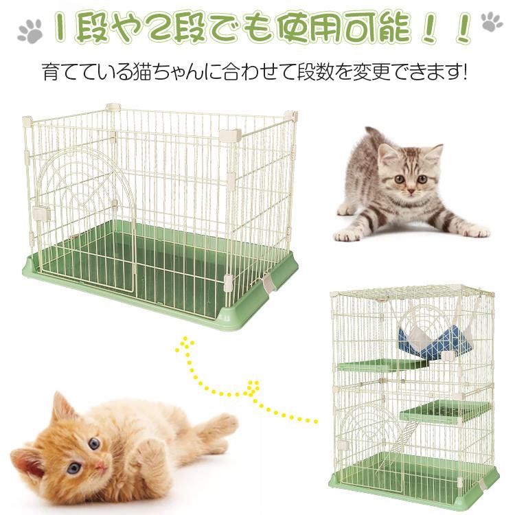 猫ケージ キャットケージ 3段 ハンモック付き はしご付き 棚板 ネコケージ 頑丈 スリム 省ペース 猫ハウス ペットハウス 子猫 ペットケージ 多頭飼い