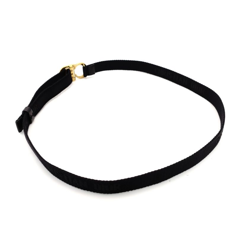 クリスチャン ディオール Christian Dior ベルト ブラック ナイロン CDロゴ 黒 ユニセックス ゴールド金具 7-6-649