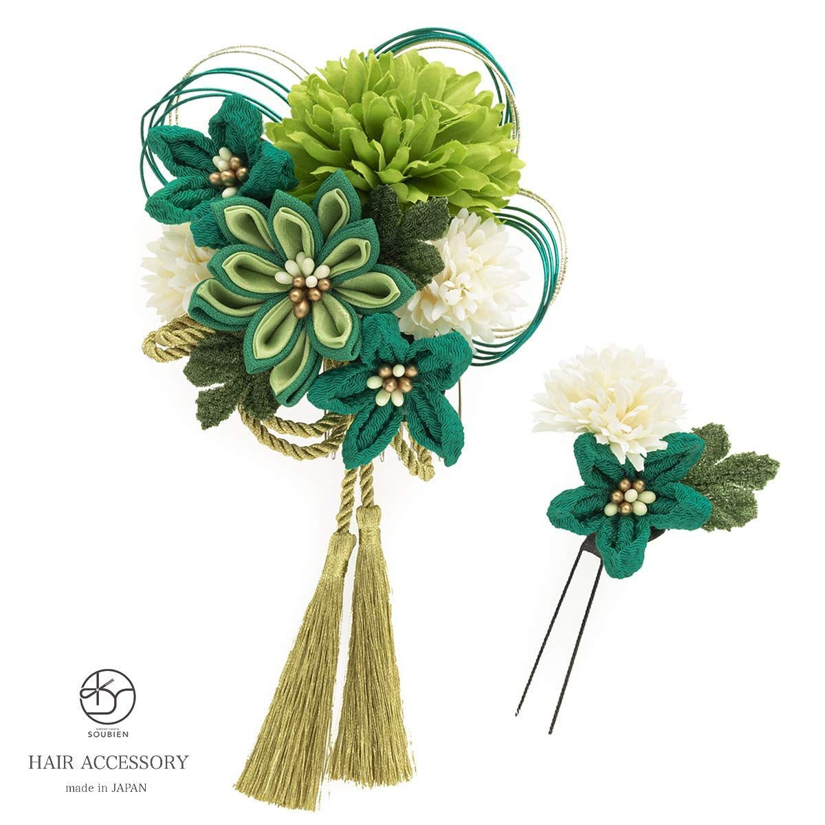 (ソウビエン) 髪飾り 卒業式 成人式 つまみ細工2点セット 菊 ピンポンマム 水引 組紐 ちりめん 房飾り 日本製 assort-kaz0054