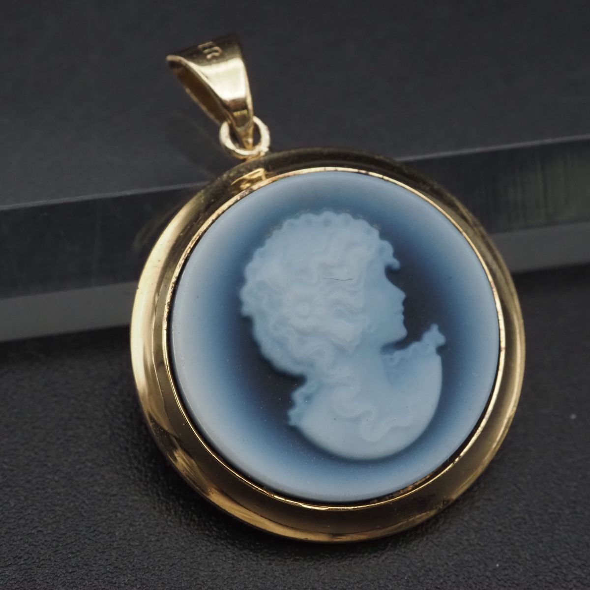 G 452 ストーンカメオ ペンダント トップ 女性横顔 ゴールド デザイン チャーム ヘッド