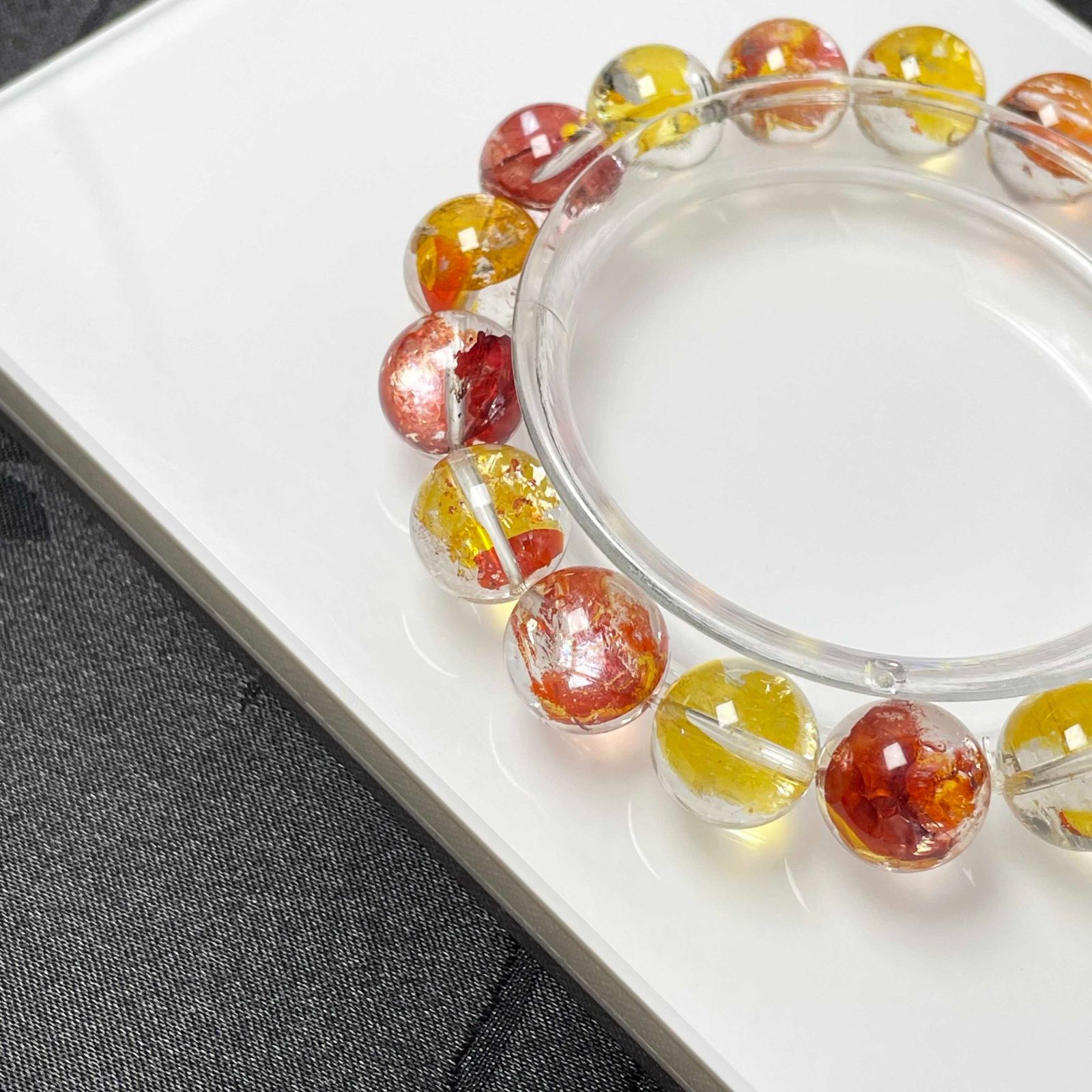③天然石のため傷、クラック(内部の割れ)、インクルージョン(内部の気泡や不純物)、ブレスレットの玉のサイズに若干の不揃いがある場合があります。