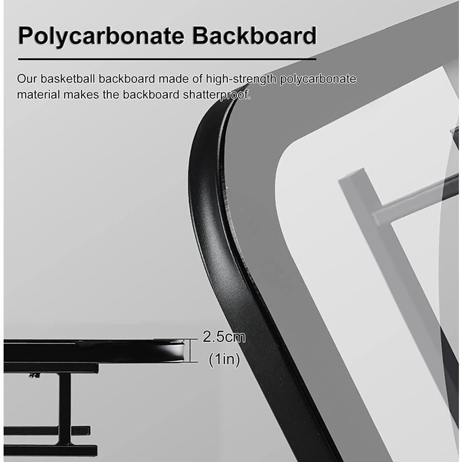 ? 飛散防止と耐久性のあるポリカーボネート:高強度のポリカーボネート素材で作られたバスケットボールのバックボードは、バックボードを飛散させません。また、リムはプラスチック製、ネットは耐候性ナイロン製で長寿命です。