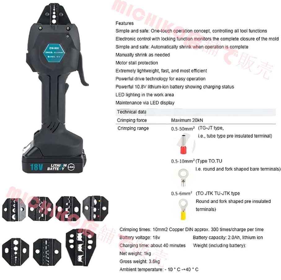 電気ケーブル圧着工具 0 5 50 mm 充電式端子ケーブルラグ圧着工具 電池 とダイス 付き 銅およびアルミニウム端子用
