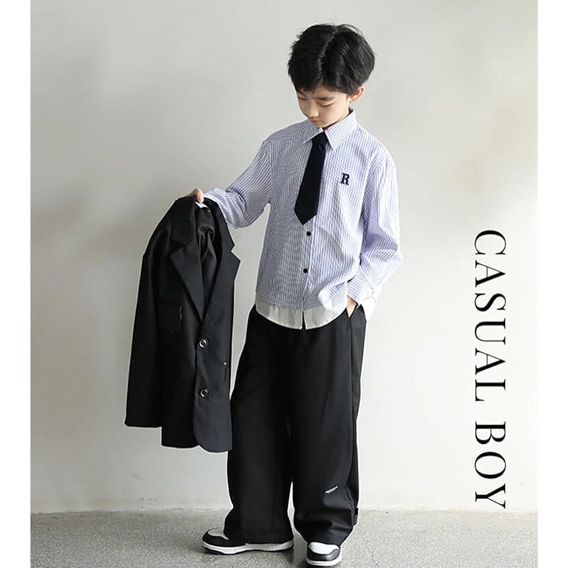 IOZO ダンス衣装 キッズ ヒップホップ チアガール 男の子 フォーマルスーツ スーツパンツ ネクタイ付き セットアップ 韓国ダンス ステージ衣装 子供スーツ チームダンス オシャレ 派手 演出服 団体服 hiphop 発表会 卒業式 120-