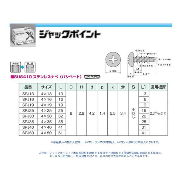 ジャックポイントの別称として〈テックスビスドリルビスセルフビス鉄板ビス〉等で呼ばれることがあります。