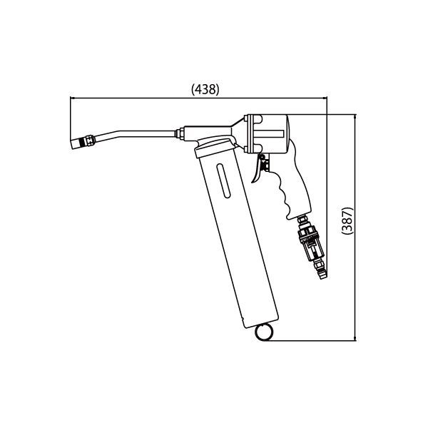 ●付属のエアレギュレーターをエア供給口に取付けのうえ、エアコンプレッサーの圧縮空気を接続することで、本体レバーを引くだけで簡単かつスピーディーにグリースアップ作業を行うことができます。