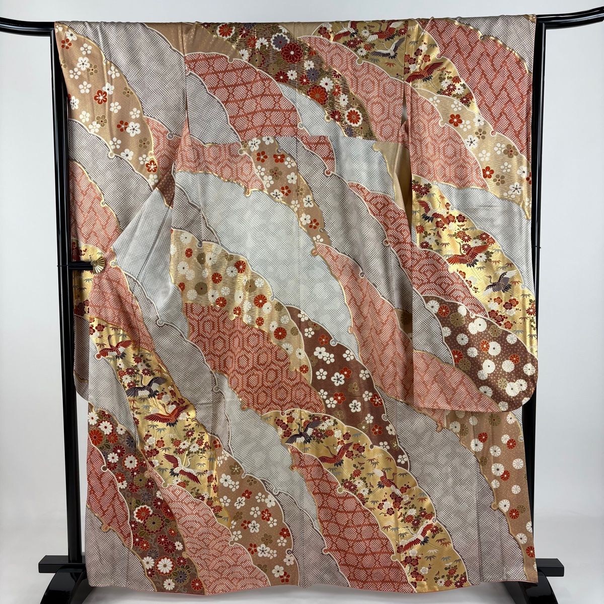 振袖 身丈161.5 cm 裄丈65 M 袷 雪輪 鶴 金糸 金彩 灰色 正絹 秀品